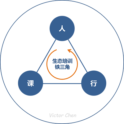 为了让大家对“人,课,行”(如图)有更多认识,从而对“生态培训体系”有更直观清晰的了解,请允许我做一个较为详细的介绍。