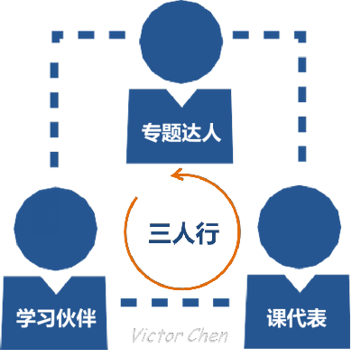 孔子曰:三人行,必有我师焉。对于生态培训体系来说,优秀的“专题达人”、“课代表”、“学习伙伴”构成的“三人行”小组是这个系统能否成功的决定因素。下面来重点讲讲我们的“三人行”小组(如图)